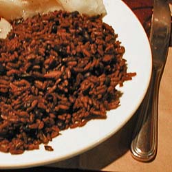 Cuban-style black beans cooked with rice.